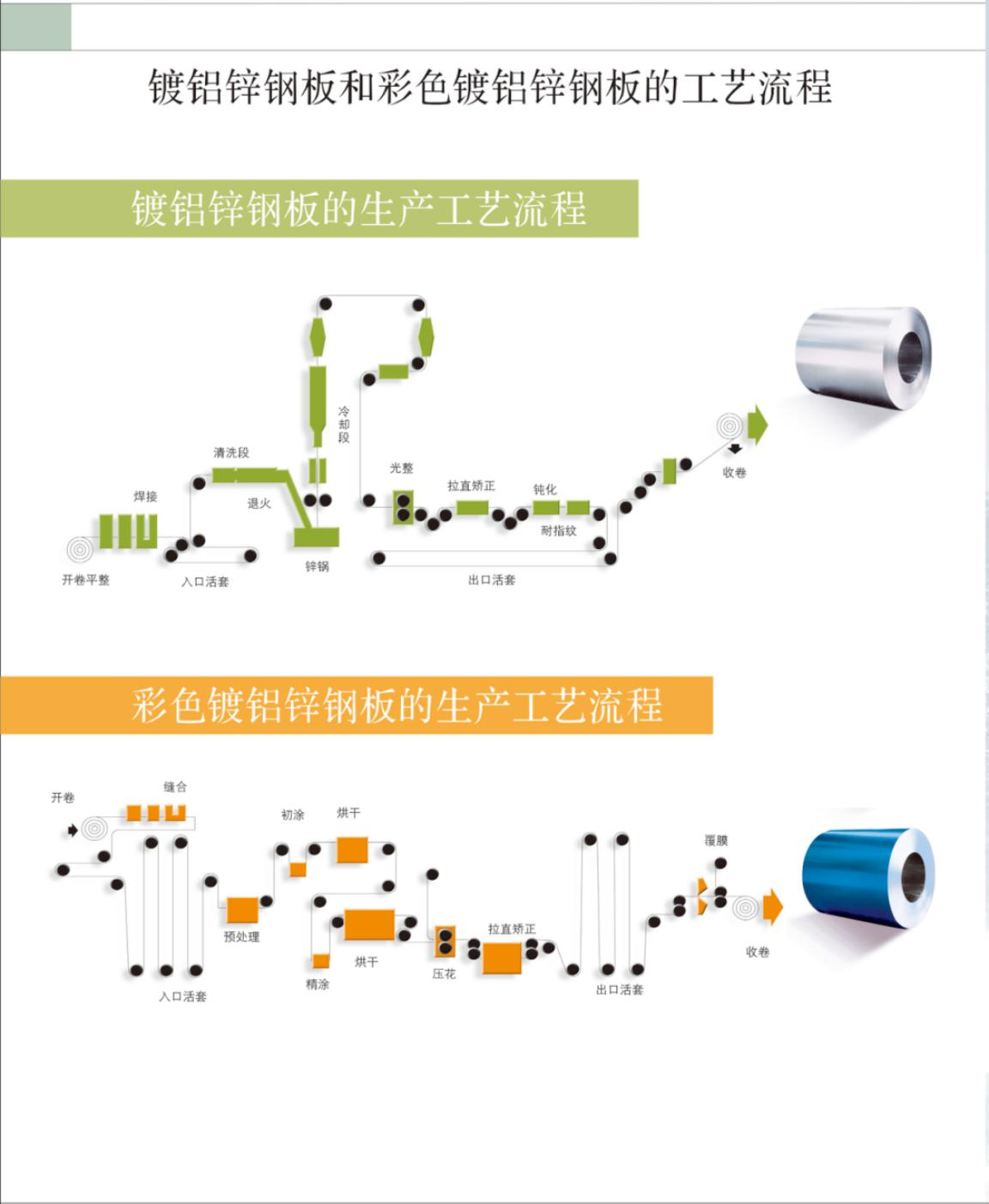 彩色鍍鋁鋅鋼板是在采用新材料及新技術(shù)的鍍鋁鋼板上以近30多年 制成的產(chǎn)品。以豐富的色彩和高經(jīng)濟(jì)效益開創(chuàng)了嶄新的建筑變化,廣泛的用于大型鋼結(jié)構(gòu)的屋頂及墻體材料,夾芯板隔墻,門窗,防盜門,家電的內(nèi)外裝飾材料等。